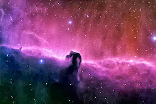 El color rojizo de la nebulosa de emisión se origina por la recombinación de los electrones con los protones de los átomos de hidrógeno. La estrella más brillante, situada a la izquierda de la nebulosa, es la popular Alnitak (ζ Orionis) del Cinturón de Orión. La forma inusual de Cabeza de Caballo fue descubierta por primera vez en una placa fotográfica a finales del siglo XIX por Williamina Fleming, en el Observatorio del Harvard College. El primero en incluir en un catálogo a la Nebulosa Cabeza de Caballo fue Edward Emerson Barnard de la Familia Barnard, en 1919.